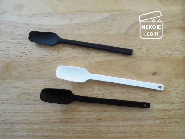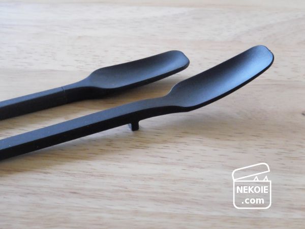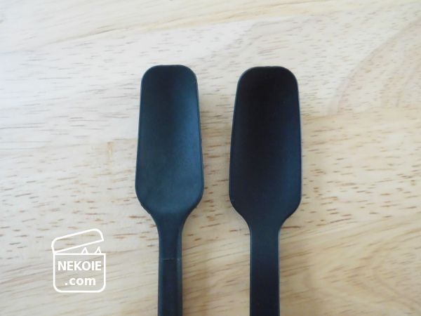 ジャム瓶や食器のふちにかけたり、カウンターの上に直接寝かせたり、これまでのストレスが軽減します。一方で、パウチなどの中身をかき出すときには、その突起がひっかかるし、汚れるし、完璧とまではいえませんでした。