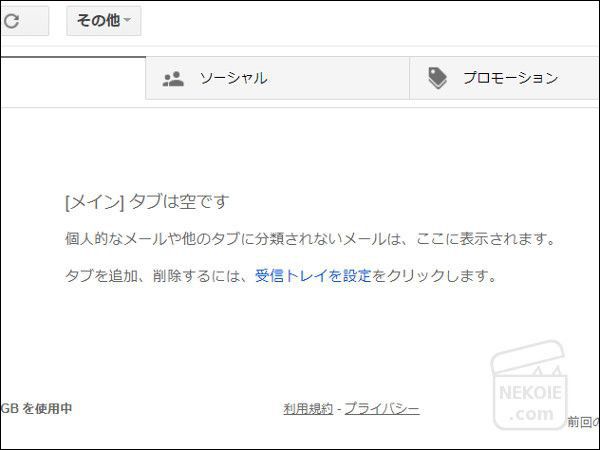Gmail(パソコン上)だとフォルダとは別に「タブ」という振り分け機能があります。設定はあれこれと変更できるのですが…