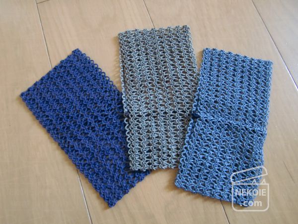 つくりは細長いメッシュ生地をリング型につなぎあわせたような形。