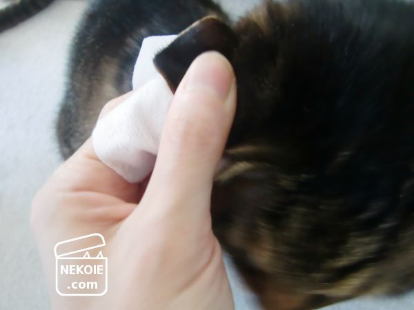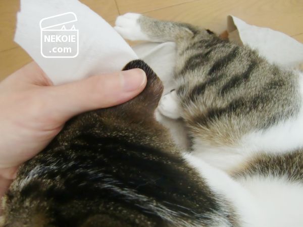 簡単に指に巻いて、そのまま猫の耳を拭かせてもらいます。