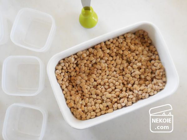 この「おきっぱなし」のつくり方でも、無事に納豆ができました。