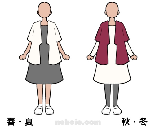 毎日着る服に迷わないよう「私服の制服化」を取り入れているため、持つのはシーズンごとに二着のワンピース。