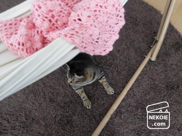 夏服の話を書いた本日、ちょっと肌寒くてショールを羽織っていました。それを五分ほどハンモックに載せておいたところ…