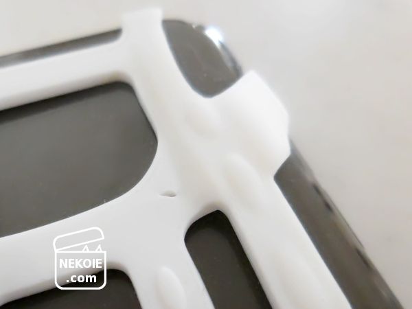 ただスマホ本体をがっちりと羽交い絞め(?)にしている白い部分はシリコン素材で着脱が簡単。必要なときは指をひっかけて伸ばすだけでもすぐに外すことができるので、とくに困ることもありませんでした。