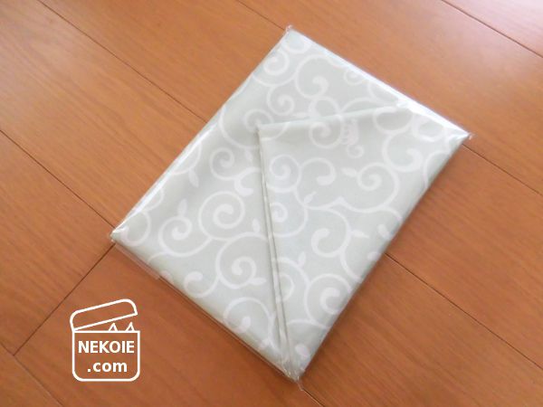 単純にサイズを大きくするだけではなく、丈夫なこと、しわになりにくいこと、お手入れが楽なことを期待して、今回選んだ素材はポリエステル。実をいうと最後までこれまでの風呂敷と同じ素材「綿」にするか、新たに「化繊」を試してみるかで悩んでいたのですが、最終的にはこちらとの出会いでポリエステルのものを購入することに。
