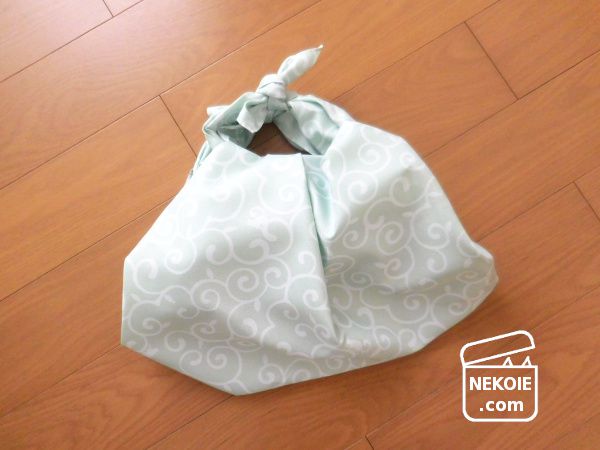 同シリーズの中に猫のいるデザインはこれ一枚だし、枚数が足りている今は買い足す予定もないのだけれど、こちらの140cm巾はバッグ型に結んでも手ごろなサイズ。ふだんの私は小さめのバッグを選ぶことが多いため、たまに大きめのものがほしいときはこの風呂敷バッグが緊急出動。