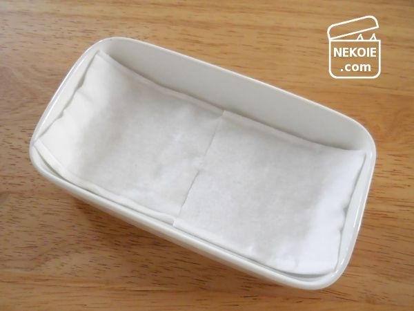 四枚に分解できるコットンを、今回は更に横にひっぱり、お皿の底を覆いやすいように形をつくりました。