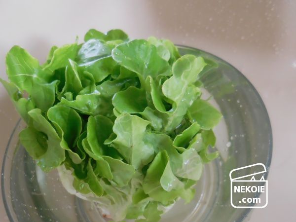 ただ今回調べてみた結果、グリーンオークは一般的な玉レタスと比較してかなり栄養豊富なよう(土壌の状態や育て方にもよるようですが)。人間が食べるぶんには嬉しい情報だけれど、猫たちにあげる場合はできるだけ量を抑えたほうがよさそうだなと認識しました。