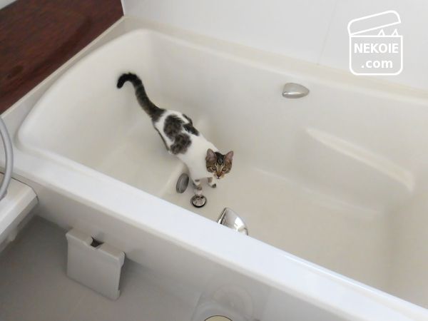 写真は空っぽの浴槽ですが、驚いたのは湯をはったままのお風呂に、子猫が入水してきたことです。
