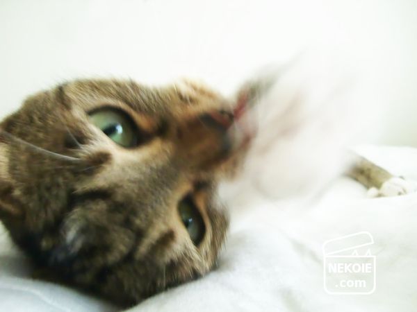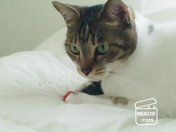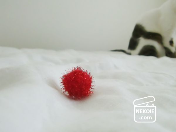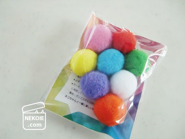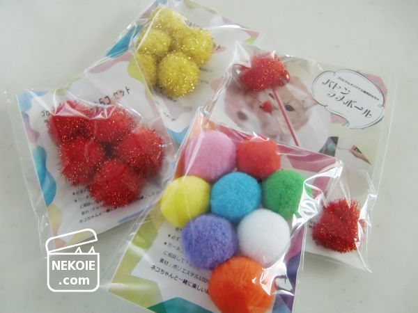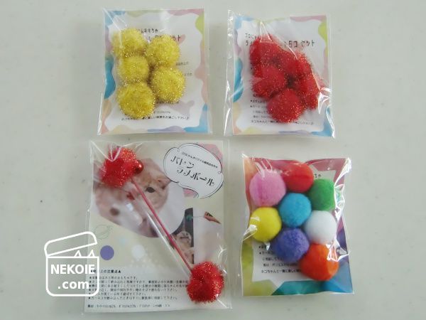 他で見る猫用おもちゃは、こういう形状のものだと台紙にひもやテープで括りつけられているものが多かったからです。