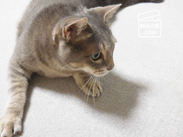 というのも、彼は時々やんちゃさを取り戻し、ぼんやりしている弟猫に自らとびかかって行くからです(視線の先に、ぼんやり顔の弟猫がいました)。