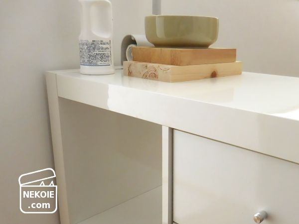 ただこれも「人間用の食器はテーブルの上(高い場所)が基本」なので、「猫の食器だけは床置き厳守」というルールだと違和感がありました。わが家の場合はうつわをひっくり返される心配がなくなったことを優先し、今のところ家具上配置を続けながら今後も色々な対策を検討していきます。