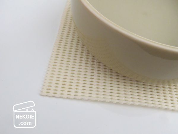 理由は単純。猫たちは問題なくここで水を飲んでくれているし、置き場所をここに変えたとたん、うつわの周囲が水びたしになるトラブルがなくなったからです。