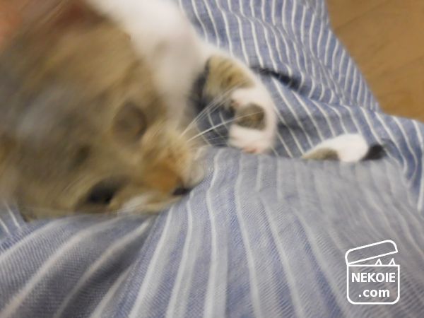 ただ子猫がボタンを誤飲してしまったり、何かの反動で吹っ飛んでいきそうなくらい激しく頭や身体を振るのを見ていて心配になりました。