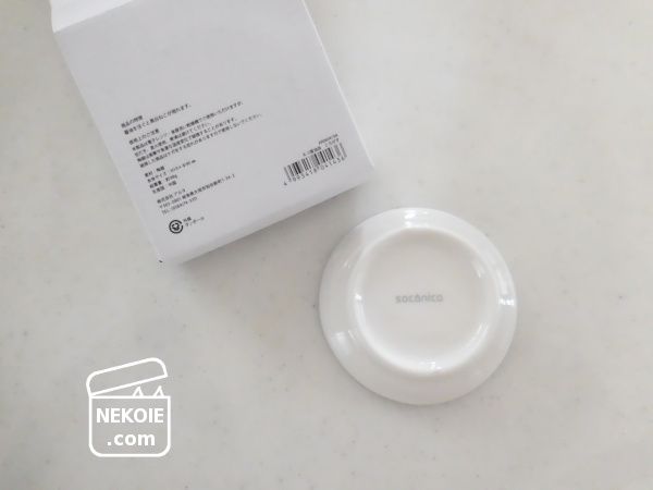 ぱっと見は真っ白な小皿。その名のとおり、醤油皿として使い勝手の良いサイズです。お皿の底には猫のシルエットが凹凸でデザインされており、醤油を注ぐとその姿が浮かび上がってくるというアイテム。
