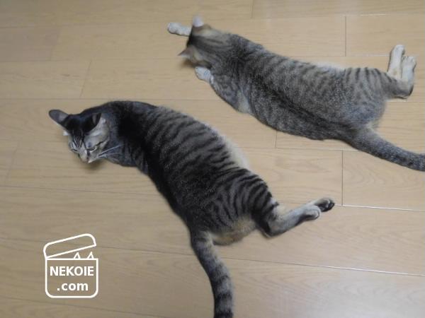 この時季になるとなんだか猫たちが行き倒れているみたいに見えるのですが…(特に右上の子)…元気です。