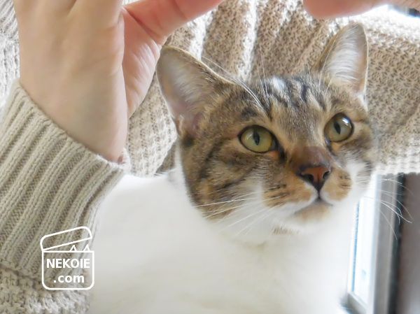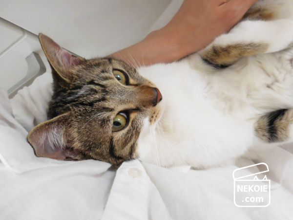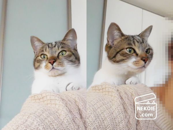 下の写真は一年以上前のもの。ほとんど写っていませんが着ているのはシャツワンピで、「猫がボタンを食いちぎりそう」という理由で、現在はすべてのシャツワンピを封印中(手放しずみ)です。