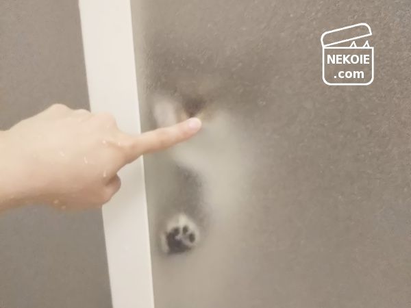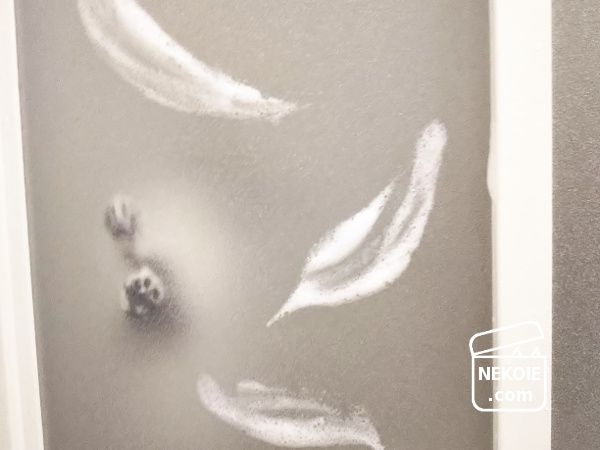 手が泡だらけだったので、猫と遊ぶついでに絵を描いたり、そのまま扉を洗ったりも。