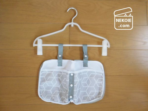 ……だけ、といってもポンとブラを入れるだけで使える洗濯ネットと比べると、この時点で結構な手間とも感じます。ただ後々便利だなと思うのは、ネットに入れたまま干せること。