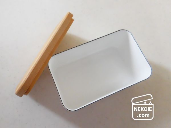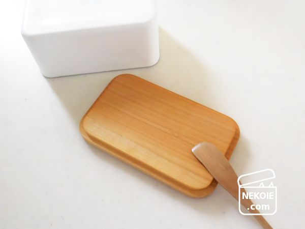 そして選んだものは、本体が琺瑯製、蓋はのせるだけの木製(サクラ)。他社製品も含め、バターケースの多くにパッキン仕様などの密閉性がないことを不思議に思っていましたが、酸化させるほど長期保存するわけではないので、とくに不便なく使い続けることができています。