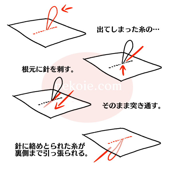 持ち手側がザラザラしていて、そのザラザラに糸が引っかかり奥へ引っ張ってくれる。綿のシャツなどはほとんどわからないくらいに隠れてくれるので便利です。