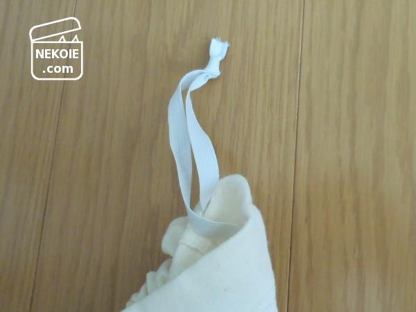 ゴムは少し長めにとって(本来なら平ゴムは縫ったほうがキレイですが)ちょこっと縛って完了です。
