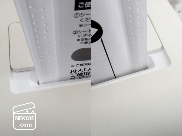 シート自体はA5サイズで、わが家のシュレッダーはA4対応。横長の状態で挿しこめば、左右のすき間はほとんどありませんでした。