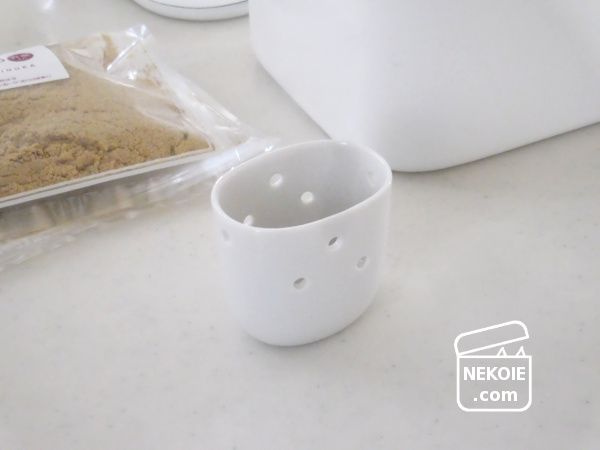 これは水取り器。これを押しこんでおくと、ぬか床からにじみ出た水分が側面の穴から落ち、うつわの中にたまります。