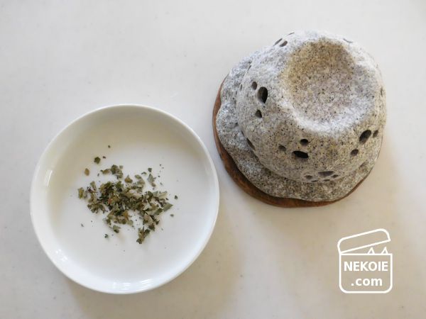 乾燥させておいたものを手でもんで、とうとうそのまま茶香炉に使いました。