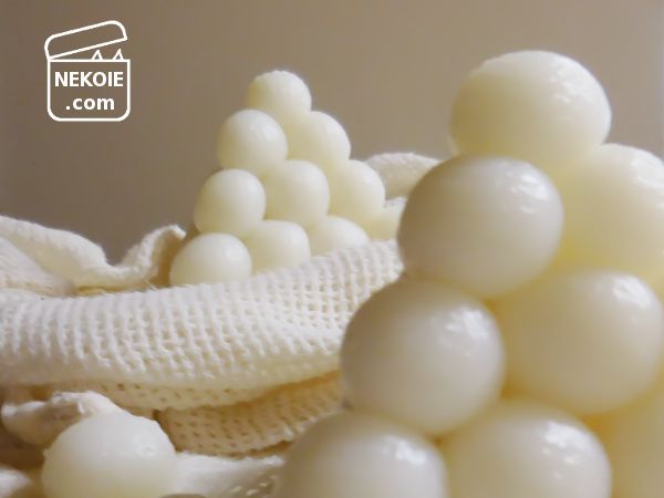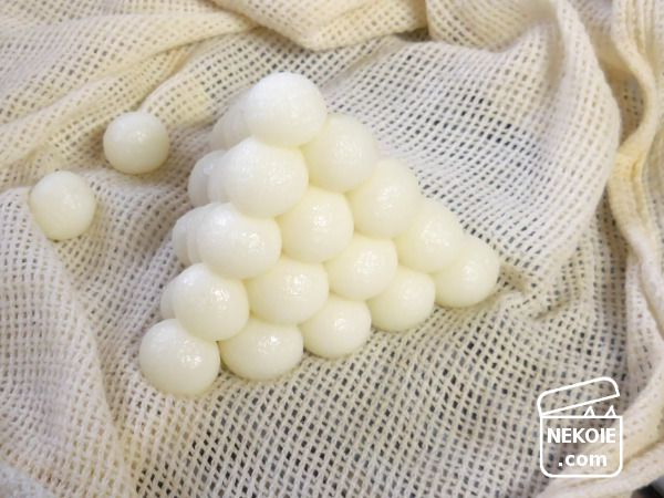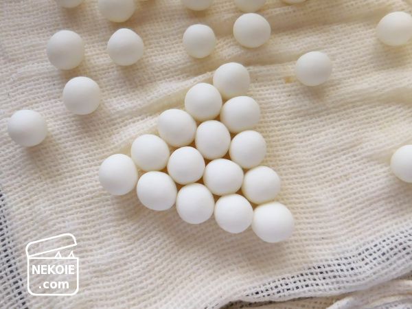 お気づきかもしれませんが、蒸し布で包んでいるため、団子の表面に布の凹凸が。