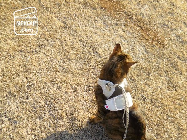 彼はわが家の猫たちの中では珍しく、自ら玄関に行き「外を歩きたい」とねだる子で、時々こうしてつれだしています。