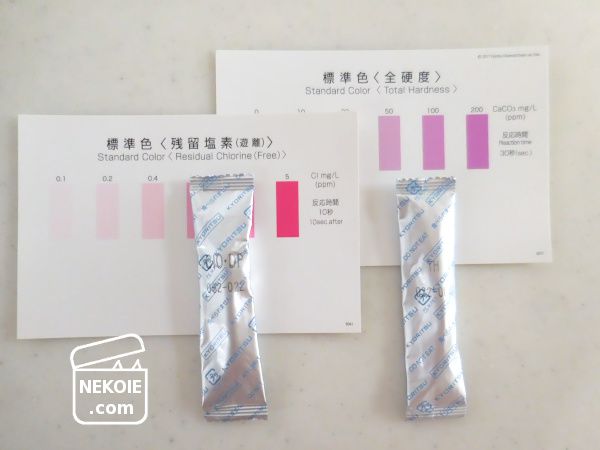 こちらは硬度ゼロでもほんのり色づく仕様。それも理由で蒸留水の数値がゼロといえるかどうかは微妙なところですが、水道水より明らかに下がっているのは確認できました。