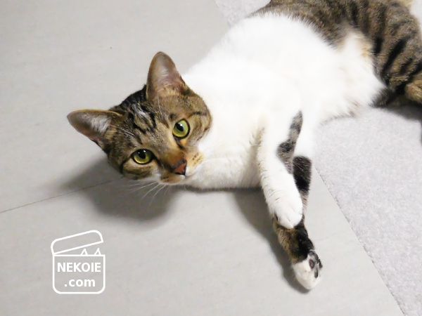 最後に、タイルと初対面の日の猫。