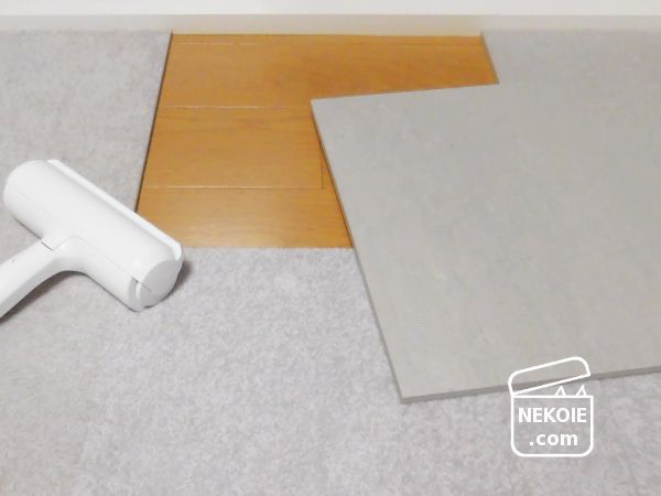 もう一つ期待していたのが、掃除に関して。起毛のないタイルなら猫の毛が絡むことはなく掃除機もかけやすい、などの理由もあったのですが、ぱくぱくローラーの使いやすさにも一役買ってくれました。