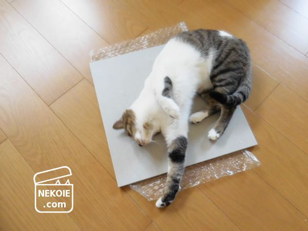 珪藻土のバスマットもそうでしたが、猫ってこういうタイルを愛しているみたい。