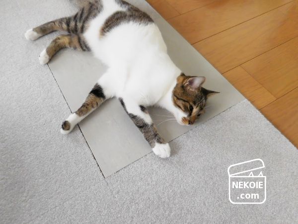 これまでの敷物にも使用感や雰囲気を気に入っているものはたくさんあったけれど、「対猫」における耐久性と安全性は、今のところこのカーペットタイルが最強かもしれません。