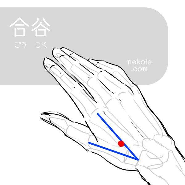 風邪のひきはじめや目、鼻、歯の痛みなど首から上の症状に効果的。ほかにも肩コリ、ストレスなど万能のツボともいわれています。