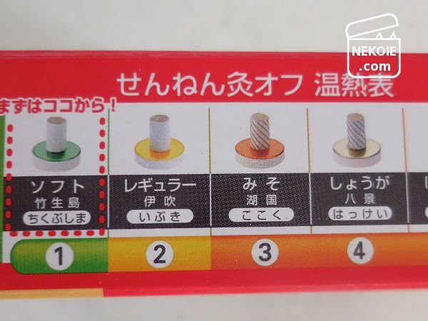 またお灸としての強さも何段階かあるのですが、お試しさせてもらった「伊吹(下から二番目)」を自分たちでもリピしています。