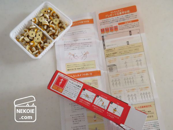 頼まれたお灸が大容量パックだったので、そこから少しだけ分けてもらい、それを試した上で少量パック(といっても80個入り)を買いました。