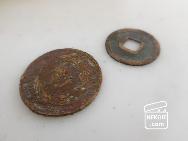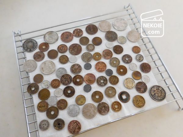 古銭はその道のコレクターの方々にとっては価値が高いものもあるそう。そうはいっても手元にあるものは状態がよくないし、今回は売ること(価値を上げること)が目的ではないので、とくにプロの手を借りることなく素人作業です。