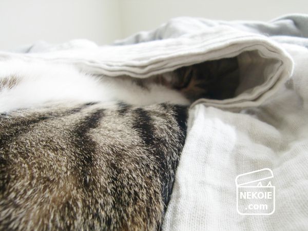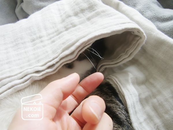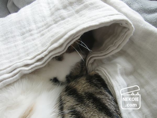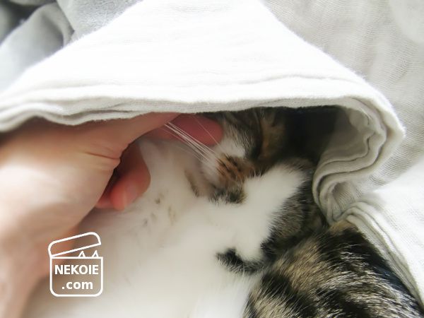 眠る弟猫にかけたガーゼケット。
