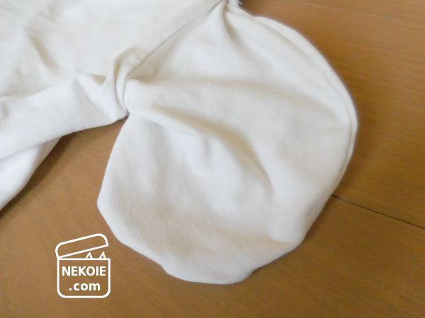 やや厚みのあるTシャツのような綿生地で、丈夫でとても好みです。ただ、冬場の室内干しでは乾きにくいことを感じていました。外側はしっかり乾いているのに、ポケットの生地だけがじんわりと湿っていることが多々。