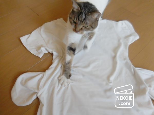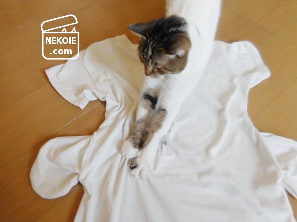 広げたワンピースを撮影していたら、どこからともなく弟猫がやってきました。