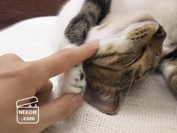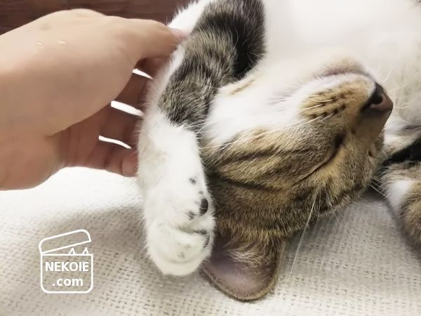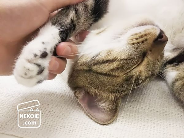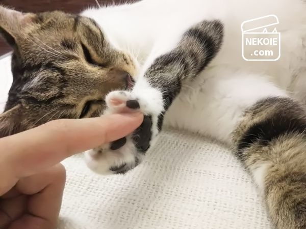 ハイタッチ、と見せかけて、肉球ぐりぐり。