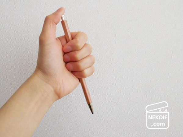 と思っていたのですが、やや太めかなとも感じる軸は昔ながらの六角の木製(別デザインもあります)で、握り心地はまさに鉛筆。愛着のあった鉛筆の芯のやわらかさなどもそん色なく、二年ほど使いこみましたが耐久性も悪くなく、今やすっかり私のペンケースの常連となりました。