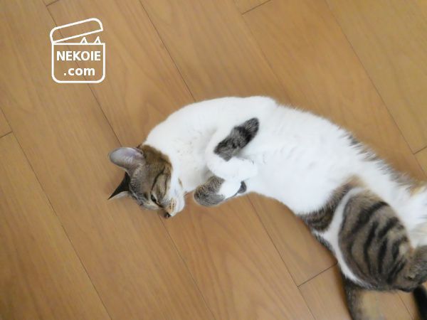 このへそ天未満の姿、最近よく見かけます。エアコンの使用を控え始めたからかもしれません。