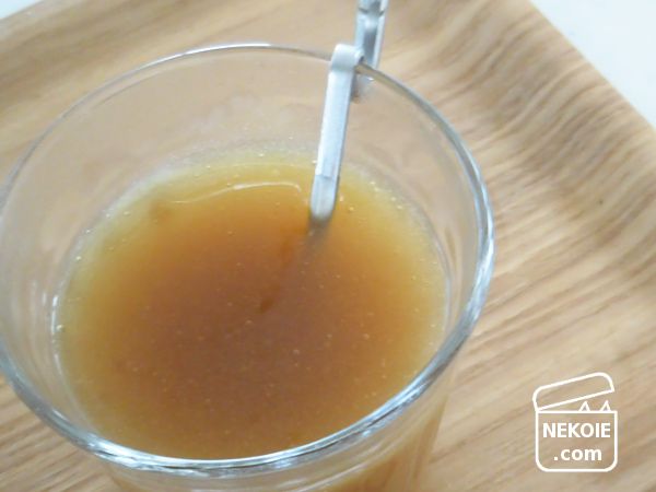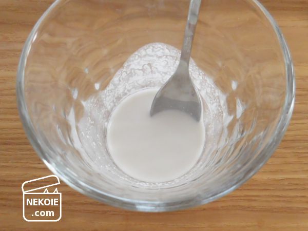 電子レンジでつくるときは「かき混ぜながらあたためる」という工程がないので、最初は少量の水(100mlの中から大さじ1~2)で溶くところから。