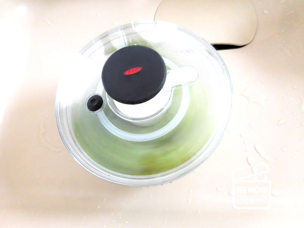 サラダスピナーを使うと、洗った後の野菜の水気が適度にとんでシャキシャキに。