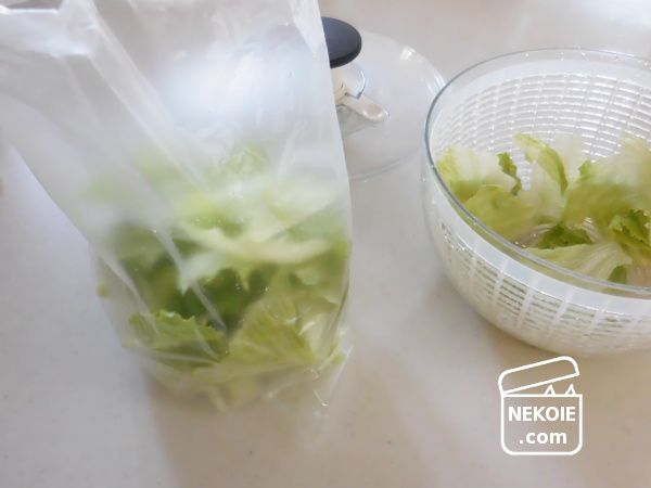 ただレタスの表面の水気が多いほど冷凍後にはがしにくいので、やはりサラダスピナーの恩恵を受けていました。