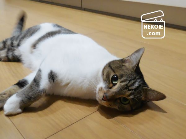ただただ構ってほしくて待っているようなのですが、危機感のない姿勢でごろんと横になっているから、人間は彼を踏まないように移動することに必死なのでした。
